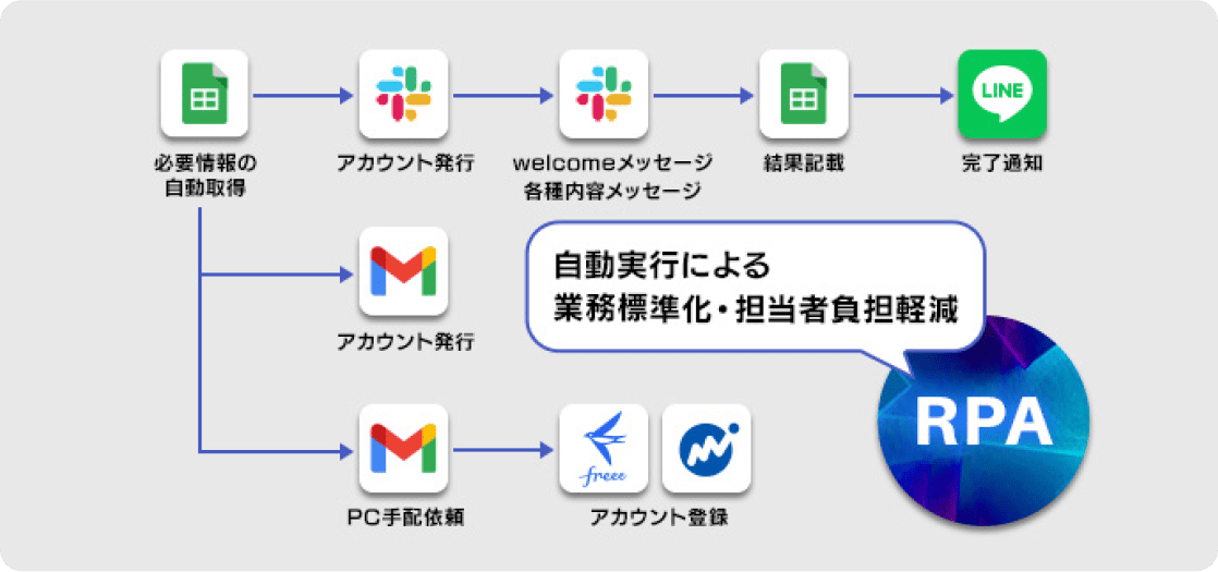 入社前にLINE公式アカウントを活用し、「Welcomeメッセージ」「配属先店長の紹介」「初日のやることリスト」を自動で配信。